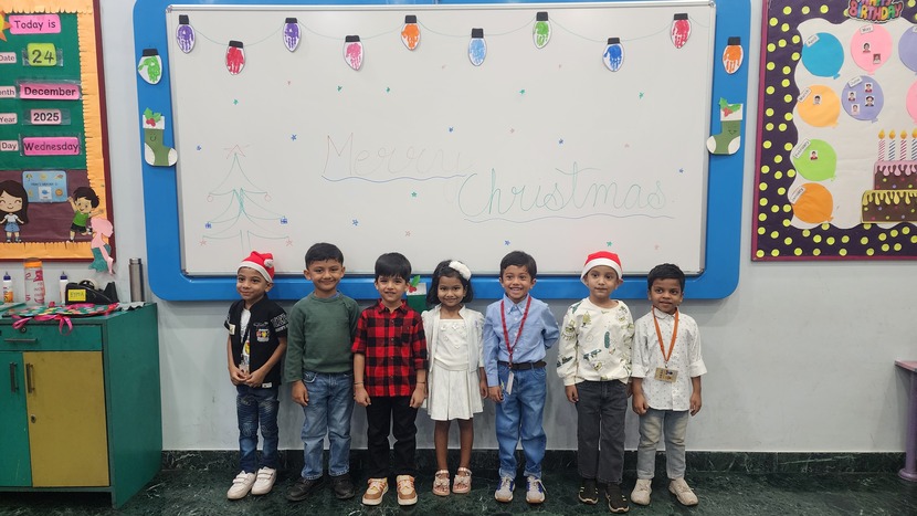 The Early Years Christmas Celebration was held on 24th December, spreading joy and festive cheer among the students. Children happily danced together to Christmas music, creating a lively and cheerful atmosphere. A special visit by Santa Claus, who danced with the children and distributed chocolates, added to the excitement. The celebration also included a class art activity, making the day fun-filled and memorable for our young learners.