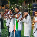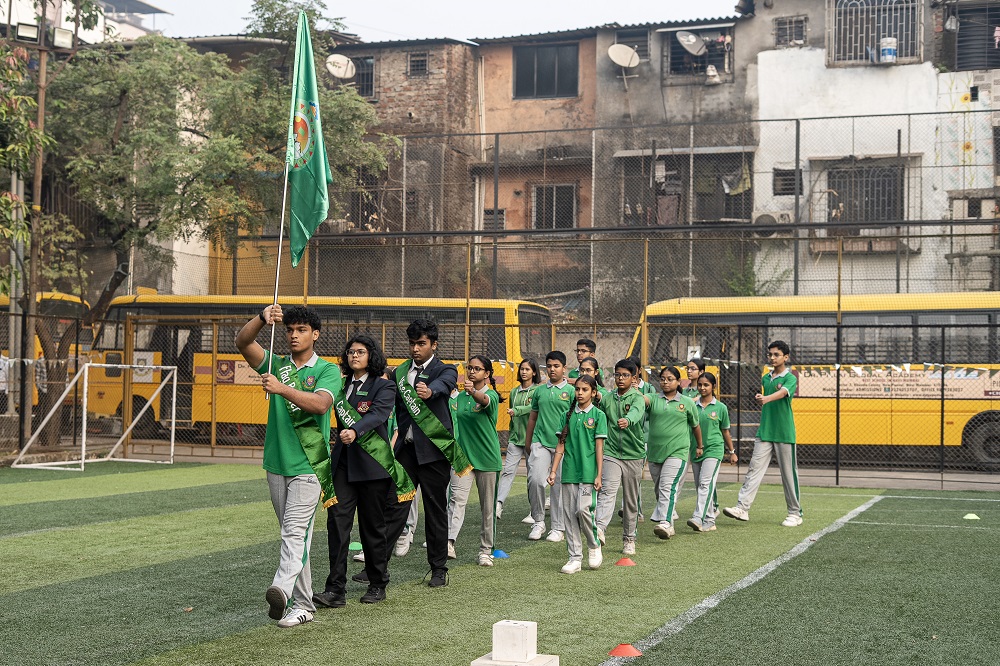 After that, the march-past commenced. The school’s very own drummers set the pace for this, as students moved forward with great poise. Led by the school’s Deputy Heads, Jeet Thakkar and Mugdha Vinod Patil, the march-past consisted of House representatives, including the Captains, Vice-Captains, and Flag Bearers, as well as other students. This was not merely a march, but a representation of the discipline of India’s youth. After this, Mr Prakash Nair delivered his address, sharing his words of wisdom with the gathering. Then, sweets were distributed — after all, it is an Indian custom to sweeten one’s mouth on days of jubilance.