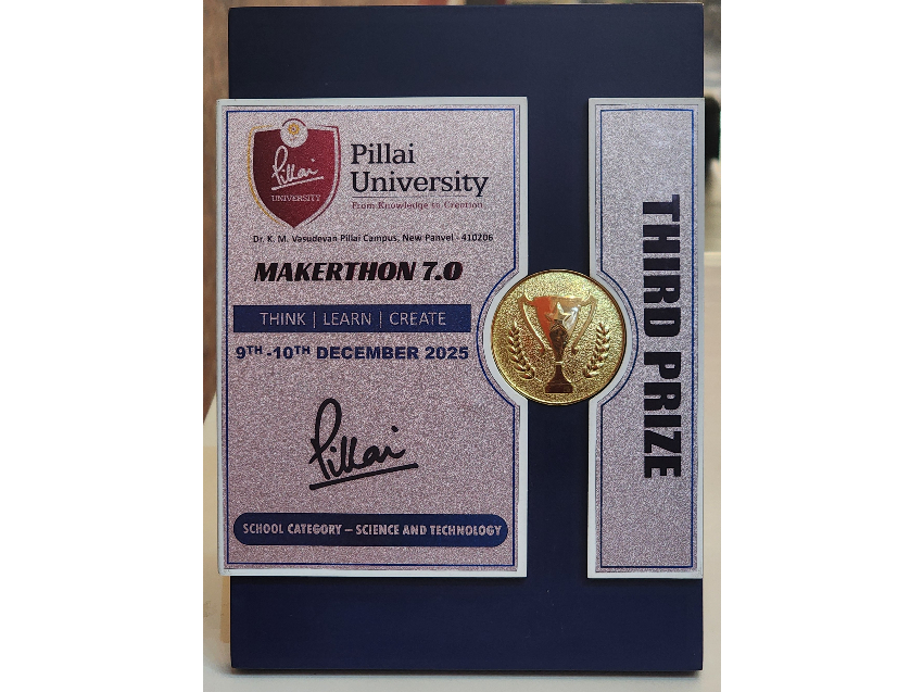 Jeet Thakkar, Kshaunish Chatterjee, P. G. Kanishkar, and Parth Kotaria secured 2nd Position at Makerthon 7.0, demonstrating remarkable innovation and creativity.